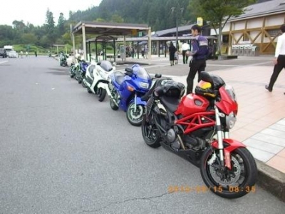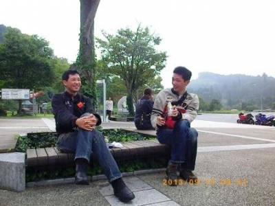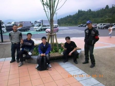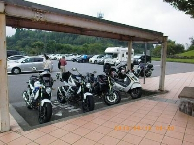 痛整備士休憩箇所、玖珠SAにて左、GSR750での初参加 I様