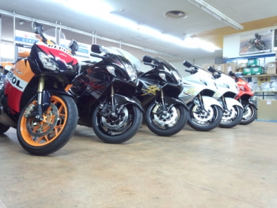 当店ではいろんなバイクで修理やご契約などで同車種が複数台並ぶことが