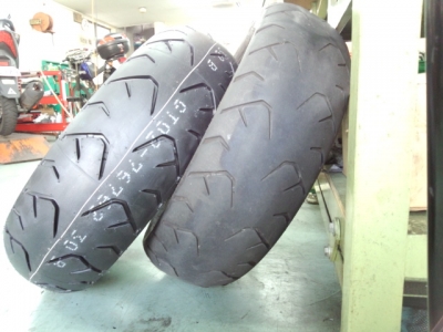 大きなお口で”たべちゃうぞぉ~”なんちゃってなんと27.000Km走行しても少し目が残っております 太いタイヤのはずが装着してみると車体のボリュームのほうがすご過ぎて